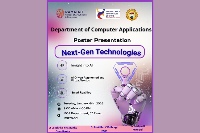 MSRCASC has earned a reputation for academic excellence, research innovation, and holistic education, reflected in its ‘A’ Grade accreditation by NAAC (4th Cycle, 2021) and its 67th rank among 4,030 participating institutions in the NIRF-2025 rankings. The college provides a strong learning ecosystem through modern infrastructure, advanced laboratories, a well-stocked library, and digitally enabled classrooms. Research and innovation are actively promoted, with several departments recognized as research centres by Bengaluru City University and the institution being selected under the DBT-STAR College Scheme by the Department of Biotechnology, Government of India. MSRCASC also serves as a Learning Support Centre for IGNOU and actively participates in national initiatives such as Unnat Bharat Abhiyan, adopting villages and engaging in rural development, community outreach, and experiential learning. With robust placement support, industry collaborations, and emphasis on co-curricular and extracurricular development, MSRCASC nurtures socially responsible, professionally competent, and future-ready graduates, reinforcing its position as one of Karnataka’s leading institutions of higher education.