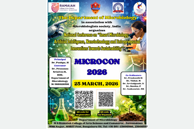 M S Ramaiah College of Arts, Science and Commerce (MSRCASC), Bengaluru, was established in 1994 under the aegis of the Gokula Education Foundation (GEF), founded in 1962 by the visionary philanthropist Dr. M.S. Ramaiah with the mission of advancing education and healthcare for the betterment of society. The college is permanently affiliated with Bengaluru City University and is recognized by the University Grants Commission (UGC) under Sections 2(f) and 12(B) of the UGC Act, 1956, with approval from AICTE. In recognition of its academic governance and quality standards, MSRCASC was conferred autonomous status by the UGC, the Government of Karnataka, and Bengaluru City University with effect from the academic year 2024–25. The institution offers a diverse range of undergraduate, postgraduate and PhD programmes across Arts, Science, Commerce, and Management, supported by industry-relevant curricula that are periodically updated to align with emerging trends, technological advancements, and societal needs