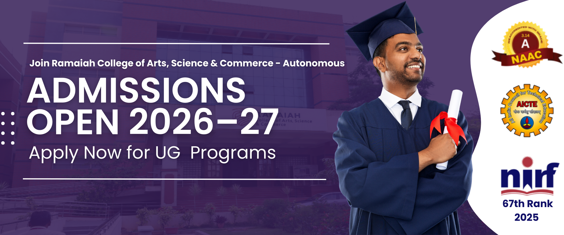 Ramaiah College of Arts, Science and Commerce does not authorize any agents for admissions. Please apply directly through our official website or visit the campus.