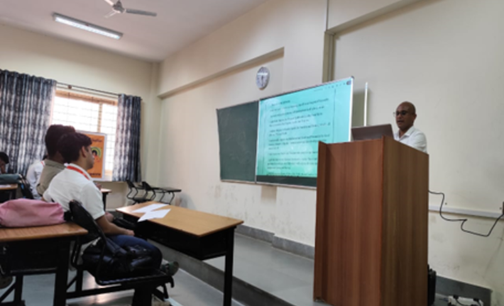The lecture was delivered by Mr. Manikantan, who highlighted the key components of a strong personality, including positive attitude, self-discipline, emotional balance, and effective interpersonal behavior. His engaging presentation and practical examples helped students understand how personality development plays a crucial role in academic success and future career readiness.
