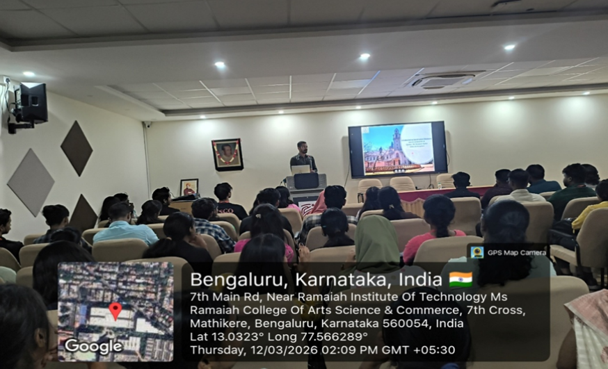 The Department of Commerce (M.Com), Ramaiah College of Arts, Science & Commerce (Autonomous), organized a Guest Lecture on “Financial Analytics in Commerce and Business: Leveraging Data and Predictive Insights for Smarter Financial Decision Making” on 30 January 2026 at 2:00 PM in the Kuvempu Seminar Hall.