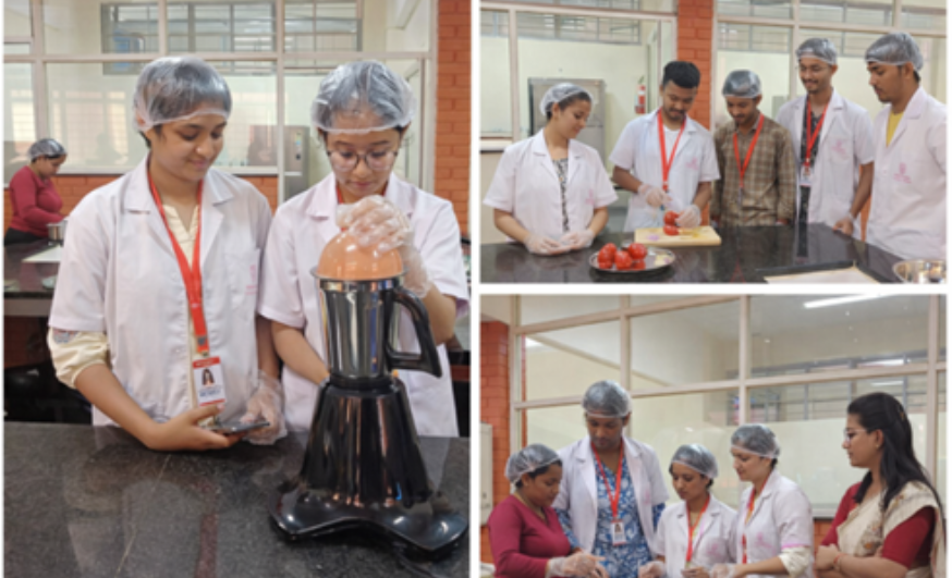 The Department of Food Technology conducted a two-day Value Added Program on “Fermented Foods” in January 2026 for II Semester B.Sc. Food Technology students, providing hands-on training and scientific insights into traditional and modern fermentation techniques. The program covered the preparation of sourdough bread, plant-based yogurts, milk and water kefir, tepache, fermented chutneys, probiotic wellness shots and amla probiotic drink. Students gained practical exposure to the role of lactic acid bacteria, yeast and mixed cultures in food preservation, flavour development and probiotic enhancement. The sessions emphasized hygiene, pH control, substrate selection and functional food applications, successfully bridging theory with laboratory practice while inspiring innovation in probiotic and value-added food product development.