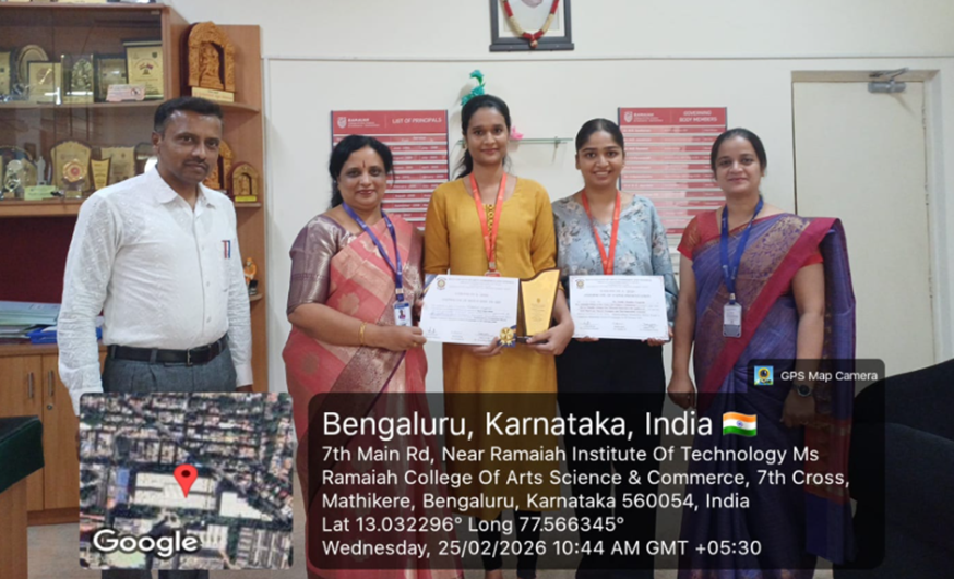 Lekshmi Gopal and Siddhi S. Pardeshi, second-year M.Sc. Chemistry students of MSRCASC, secured the Best Oral Presentation Award under the guidance of Dr. Amreen Khanum at SAMANVAYA 2026, held on 20 February 2026 at MES College of Arts, Science and Commerce, on the theme “Bridging Science and Technology: Recent Trends and Emerging Innovations.”