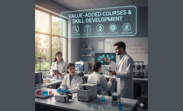 The department offers a range of value-added courses designed to enhance research aptitude and entrepreneurship skills among students. These courses provide additional training beyond the regular curriculum, covering advanced laboratory techniques, industry-oriented skills, and microbial applications. Students also receive support through internships, hands-on training, and placement assistance, preparing them for diverse career opportunities in academia, industry, and start-up ecosystems.