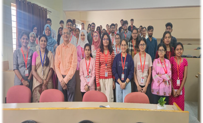 The Department of Microbiology organized a guest lecture on “Avenues in Biology” as part of the induction program for first-year students. Dr. Sushama Yermal delivered an engaging and insightful session, introducing students to the evolution of biology from classical disciplines to advanced domains like synthetic biology, systems biology, and computational biology.