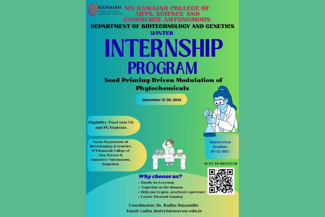 Dr. M.S. Ramaiah, a visionary and philanthropist, established Gokula Education Foundation (GEF) in the year 1962, to deliver education and healthcare for the betterment of mankind. The Gokula Education Foundation as a registered Trust runs several educational institutions under the flagship of GEF, M.S. Ramaiah College of Arts, Science and Commerce (MSRCASC) was established in 1994. The college is permanently affiliated to Bengaluru City University (BCU). The institution has received the autonomous status from UGC, Government of Karnataka and Bengaluru City University from the academic year 2023-24. The Institution is recognized by the UGC under Sections 2(f) and 12(B) of the UGC Act of 1956. The Institution is reaccredited with an "A" grade by NAAC in its 4th cycle in the year November 2021.