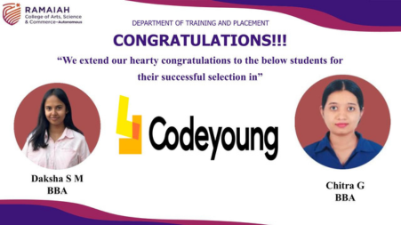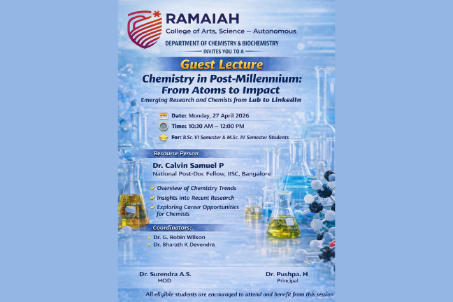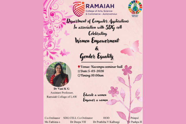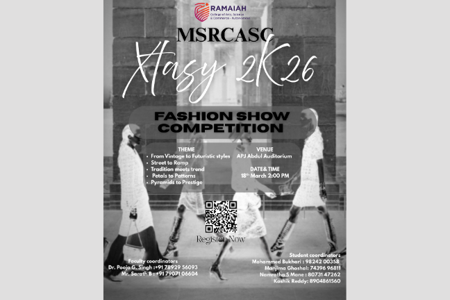 MSRCASC has earned a reputation for academic excellence, research innovation, and holistic education, reflected in its ‘A’ Grade accreditation by NAAC (4th Cycle, 2021) and its 67th rank among 4,030 participating institutions in the NIRF-2025 rankings. The college provides a strong learning ecosystem through modern infrastructure, advanced laboratories, a well-stocked library, and digitally enabled classrooms. Research and innovation are actively promoted, with several departments recognized as research centres by Bengaluru City University and the institution being selected under the DBT-STAR College Scheme by the Department of Biotechnology, Government of India. MSRCASC also serves as a Learning Support Centre for IGNOU and actively participates in national initiatives such as Unnat Bharat Abhiyan, adopting villages and engaging in rural development, community outreach, and experiential learning. With robust placement support, industry collaborations, and emphasis on co-curricular and extracurricular development, MSRCASC nurtures socially responsible, professionally competent, and future-ready graduates, reinforcing its position as one of Karnataka’s leading institutions of higher education.