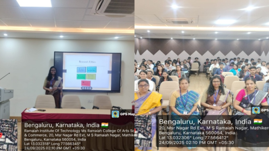 The Department of Computer Applications organised a workshop on “Foundation of Research Aptitude and Methodology” on 24th September 2025 at the Kuvempu Seminar Hall. A total of 79 students participated in the session. The workshop focused on building a strong base in research methodology by covering the fundamentals of research, types of research, formulation of research questions and hypotheses, literature review methods, sampling techniques, and various data collection tools. Students also gained an understanding of data analysis, interpretation, and essential guidelines for writing research papers and theses. The session was facilitated by Dr. Sowbhagya R., a distinguished academician and researcher in the field of Science, widely recognised for her expertise in mentoring students and conducting research-focused workshops. Her clear explanations and practical insights made the session highly interactive and engaging. Students appreciated the relevance and depth of the content delivered, noting that the workshop strengthened their confidence in undertaking research projects and applying appropriate methodologies effectively. The event was coordinated by Ms. Suma C. from the Department of Computer Applications.