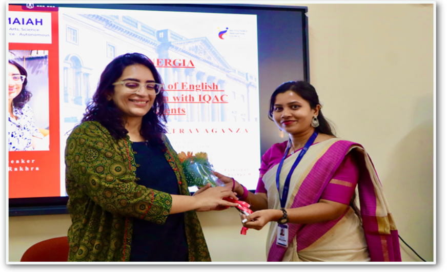 The Department of English’s SYNERGIA Club, under the IQAC initiative, successfully organized a workshop titled “Adapted for Impact; Lessons through Literature and Biopics” on January 31, 2025, at 10:30 a.m. in the Mother Teresa Auditorium, MSRCASC. The event featured Dr. Manjula Veerappa, Associate Professor at Vijaya College, Bengaluru, as the esteemed guest speaker.
