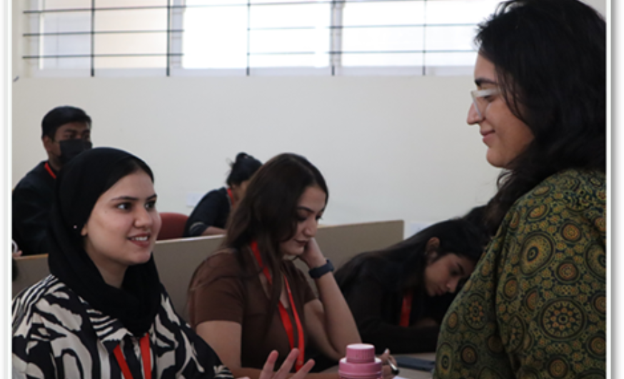 The programme commenced with an inaugural address by Anushka Chandra and Sadaf Parveen, students of IV Semester BA Political Science, Journalism & Optional English, who welcomed the gathering. The guest speaker, Ms. Drishti Rakhra from St. Joseph’s University, was formally introduced, setting the context for the workshop’s thematic focus on language, storytelling, and everyday expression.