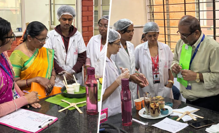 The Department of Food Technology at MS Ramaiah College of Arts, Science and Commerce (Autonomous) successfully organized a Culinary Skill Competition on 12 March 2026 at the Food Technology Laboratory. The event witnessed enthusiastic participation from students and faculty who presented a variety of innovative and nutritious dishes based on themes such as Nutrifusion Smoothies, Nutririch Salad, Millet Based Breakfast Bites and Gut Friendly Fermented Goodies. Participants showcased creative preparations including millet milk spinach. Muskmelon based smoothies, bajra laddus, bajra kanji, appam and makhana ice cream, highlighting the importance of healthy and functional foods. The dishes were evaluated by judges Dr. Channarayappa, Dr. Jayashree D. R. and Roopa H. S. Second Semester B.Sc. Food Technology students volunteered in organizing the event, while Journalism students documented the competition through photographs and reels shared on the college’s official Instagram page. The event concluded with the Principal distributing trophies and certificates to the winners, making it a vibrant celebration of culinary creativity and nutrition.