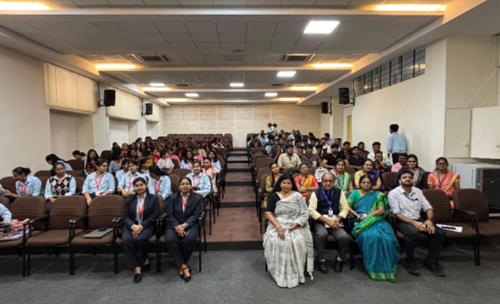 The session was delivered by Ms. Harini Krishnan, Global Head – DEI & Culture at [24]7.ai, focusing on the topic "Talent Acquisition to Retention: An End-to-End HR Perspective."in Kuvempu Seminar Hall.