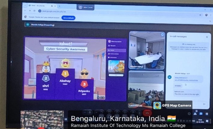 The Department organized a webinar on “National Cyber Security Awareness Program” in the Gallery Room. The session was delivered by Mr. Monish Adithya, Information Specialist at Amadeus, Ireland, who provided insightful guidance on the importance of cyber security, safe online practices, and emerging threats in the digital world. The event was coordinated by Lt. Lakshitha H. S. Murthy, ensuring the smooth and effective conduct of the program. The webinar offered students a deeper understanding of cyber safety measures, data protection strategies, and the need for responsible digital behavior. The session proved highly informative and engaging, enhancing students’ awareness and equipping them with essential knowledge to navigate the cyber landscape securely.