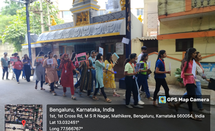 The Department of Microbiology, MS Ramaiah College of Arts, Science and Commerce, Bengaluru, organized a Dengue and Malaria Awareness Program on 10 July 2024 in the residential areas and local market of Mathikere. Second Semester M.Sc. Microbiology students, accompanied by faculty members Dr. Prasanna Srinivas and Dr. Nimita Venugopal C, actively participated in the outreach activity. The initiative aimed to educate the public on the symptoms, transmission, and preventive measures related to these vector-borne diseases. Students distributed informative pamphlets, displayed creative charts, and delivered slogans in Kannada to effectively communicate the importance of mosquito control, hygiene practices, and early diagnosis. The program successfully enhanced community awareness, empowered students with practical public health experience, and fostered collective responsibility in preventing Dengue and Malaria.