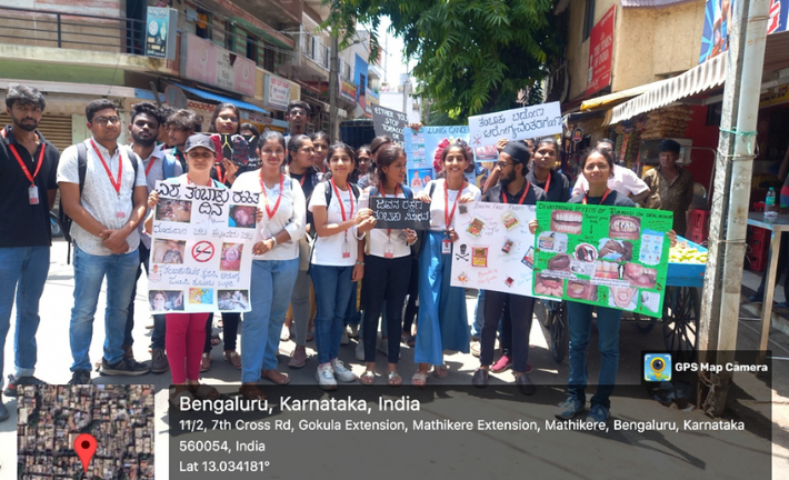 The Department of Microbiology, in association with NSS and under the DBT-STAR College Scheme, organized a World No Tobacco Day Awareness Programme on 31st May 2024 at Mathikere Market, Bengaluru. Faculty members and around 30 UG and PG students actively engaged the public through informative sessions, distribution of educational materials, and interactive discussions on the harmful effects of tobacco. The outreach initiative successfully created awareness in the community while providing students valuable hands-on experience in public health advocacy.