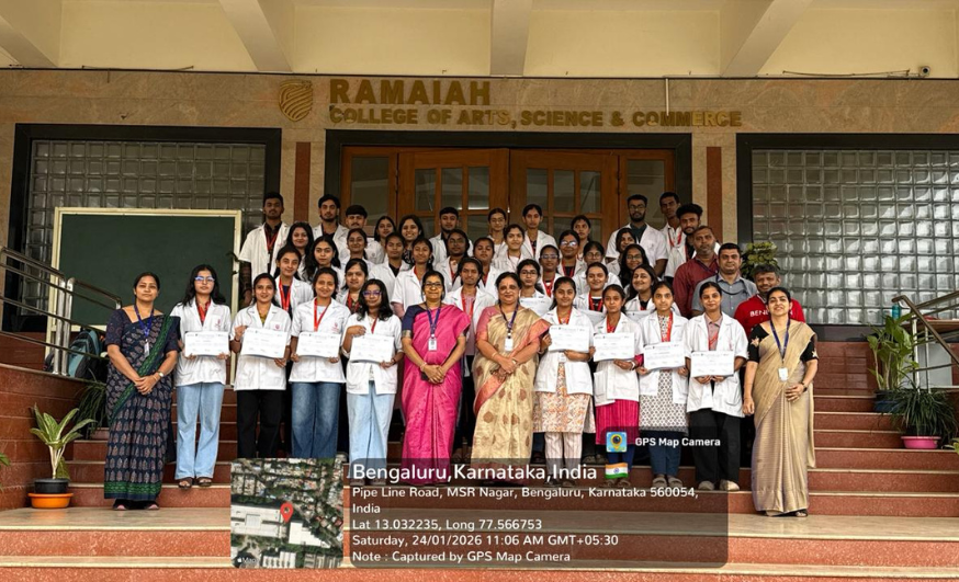 The Department of Biotechnology at Ramaiah College of Arts, Science, and Commerce reaffirmed its commitment to academic excellence and research innovation by successfully organizing the Value-Added Programme on Mammalian Cell Culture from 15th to 19th September 2025. During this program, postgraduate students received intensive, hands-on training in both the theoretical fundamentals and practical techniques of mammalian cell culture, such as aseptic culture practices, cell counting, viability assays, and cryopreservation. Led by the distinguished IISc Scientist Prof. Paturu Kondaiah and PMRF fellows from the Indian Institute of Science as resource persons, participants engaged in interactive troubleshooting and mastered cutting-edge research applications in biotechnology. The event exemplified the department’s mission to empower future scientists through experiential learning and collaborative inquiry, further strengthening its reputation as a hub for innovation and excellence.